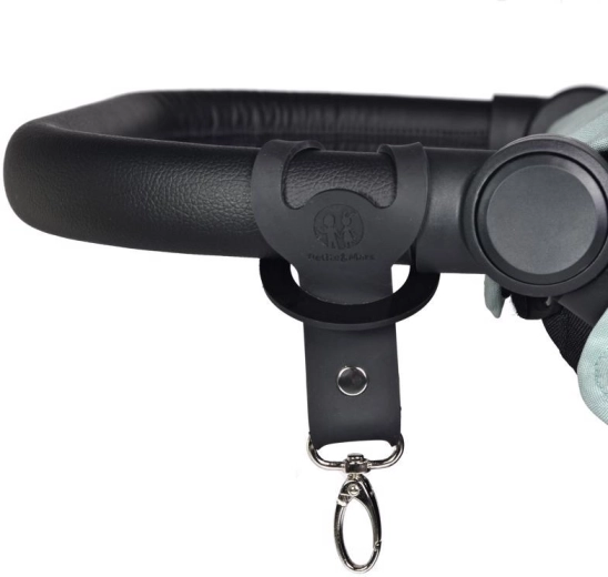 A pántot egyszerűen a babakocsi fogantyúja köré tekeri és patenttal rögzíti; a táska a masszív, forgó karabinerre csatlakozik.