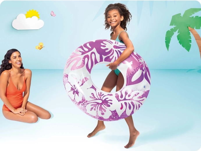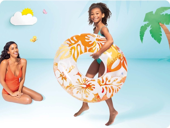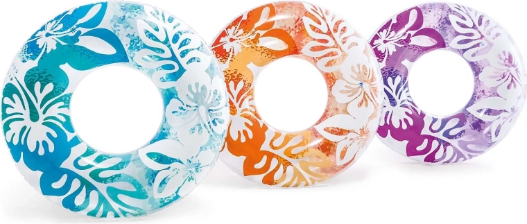 Az INTEX Hawaii felfújható úszógumi átlátszó vinylből készült trópusi virágmintával, vonzó színekben. Ideális a víz felszínén való pihenéshez és játékos pancsoláshoz. A minőségi, erős PVC kivitelnek köszönhetően ellenáll a kisebb kopásoknak, és készen áll egy egész nyárnyi szórakozásra.