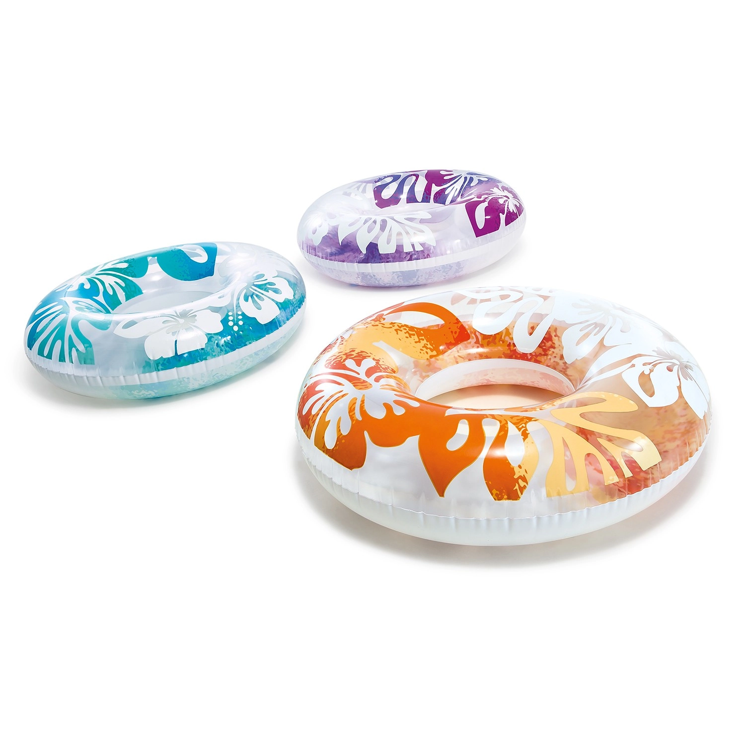 Átlátszó vinyl virágmintás nyomattal narancssárga, kék vagy lila színben – stílust kölcsönöz a nyaradnak, és növeli a láthatóságot a víz felszínén.