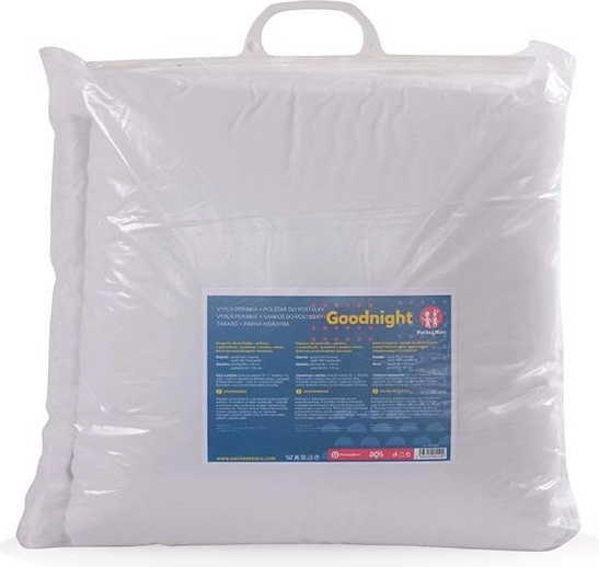 A Petite&Mars Goodnight kiságy-töltet szett egész évben nyugodt alvást biztosít. A takaró és a párna könnyű, puha és jól tartja a formáját. A pamut huzat kellemes tapintású, míg a belső üreges szál szellőzést, könnyű karbantartást és antiallergén tulajdonságokat biztosít.