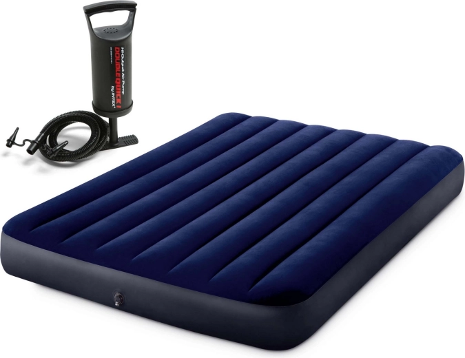 A csomag része a nagy teljesítményű kézi dugattyús pumpa, amellyel a matrac könnyen felfújható és leereszthető. Csatlakoztassa a tömlőt a szelephez, és néhány perc alatt kész a kényelmes fekhely.