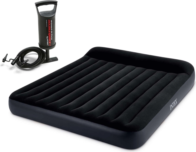 Élvezze a kényelmes alvást otthon és útközben az INTEX felfújható matracával, 203 × 183 × 25 cm méretben. A Fiber-Tech és Dura-Beam technológiáknak köszönhetően a matrac magas tartósságot, stabil alátámasztást és kényelmes, puha velúr felületet kínál. A csomag tartalma egy nagy teljesítményű kézi dugattyús pumpa és egy öntagadó javítófolt is.