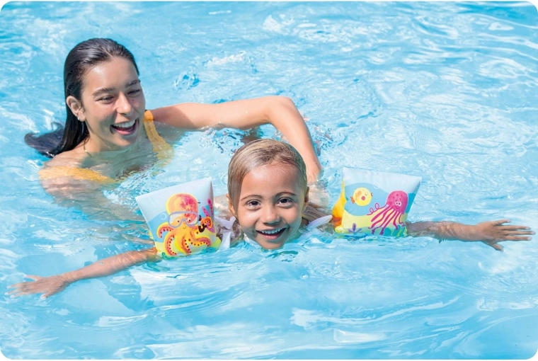 Az INTEX felfújható karúszók ideális segédeszközök az első lépésekhez a vízben. A két különálló légkamra nagyobb biztonságot és stabilitást nyújt, míg a puha, mégis tartós PVC anyag kellemes tapintású, és ellenáll a mindennapos használatnak medencében és tengerben egyaránt.