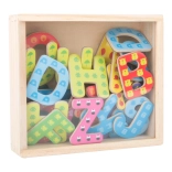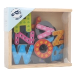 Színes és szórakoztató készlet fából készült mágneses betűk, amely alkalmas a gyermekek kreativitásának és nyelvi készségeinek fejlesztésére.