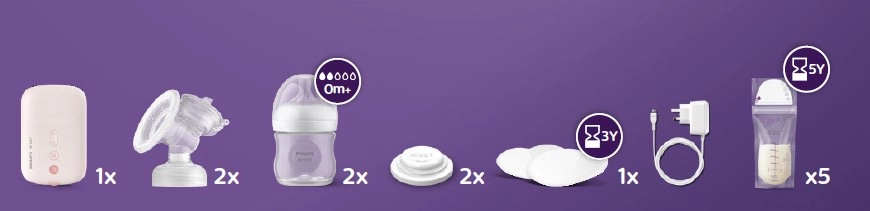 Értékelni fogja a legutóbb mentett beállítás funkciót a gyors indításhoz, az áttekinthető vezérlést, valamint az egyszerű karbantartást a kevesebb alkatrésznek köszönhetően. A puha szilikonpárna finoman alkalmazkodik a legtöbb mellbimbóformához, és kényelmet nyújt hosszabb fejés közben is. A praktikus cumisüvegek és tasakok jól látható mércével megkönnyítik az anyatej gyűjtését és tárolását.