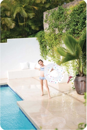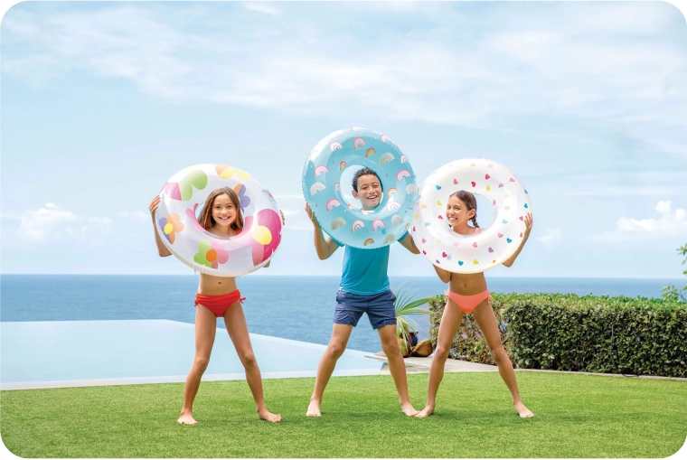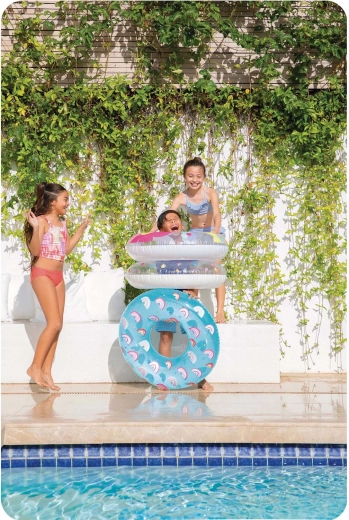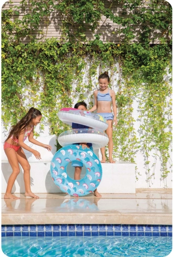 A 81 cm-es átmérő és akár 40 kg teherbírás stabil felhajtóerőt nyújt gyerekeknek és fiatalabb tiniknek – ideális pihenéshez és játékhoz a vízben.