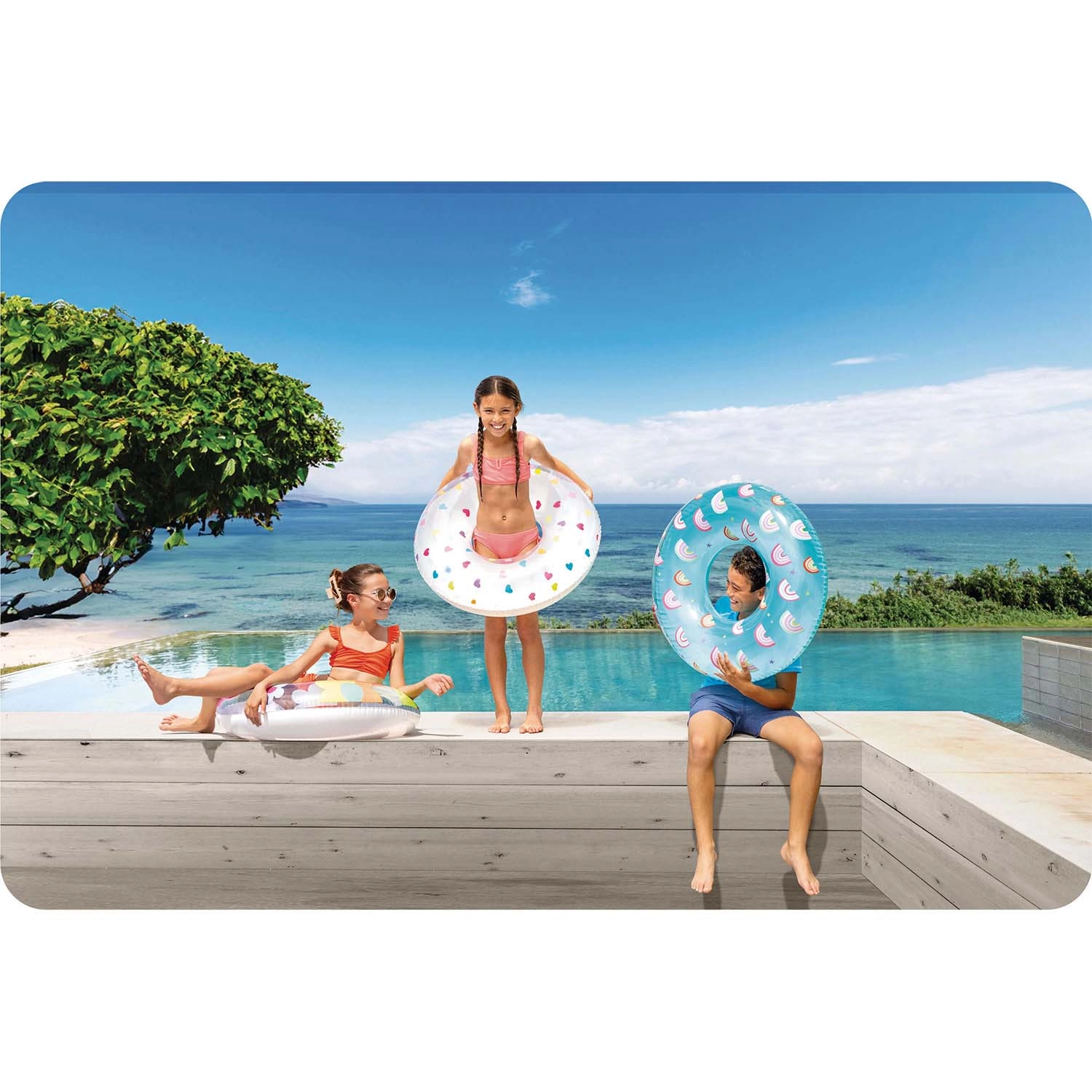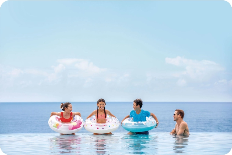 Az átlátszó test élénk, sokszínű virágokkal növeli a láthatóságot a vízen, és friss nyári megjelenést ad az aktivitásoknak, amit a gyerekek imádni fognak.