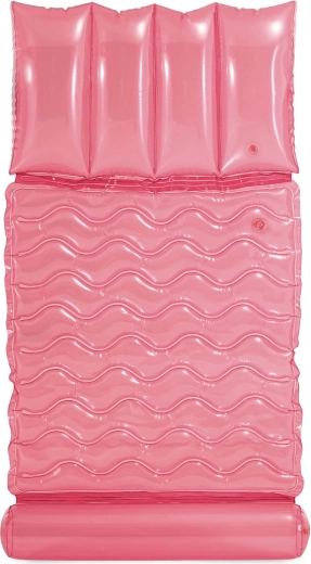 Az elegáns, rózsaszín INTEX felfújható matrac tökéletes napozáshoz és nyugodt lebegéshez a vízen. Az ergonomikusan formázott, hullámos felület és az integrált párna támogatja a kényelmes pihenést, míg a minőségi PVC anyag hosszú élettartamot biztosít.
