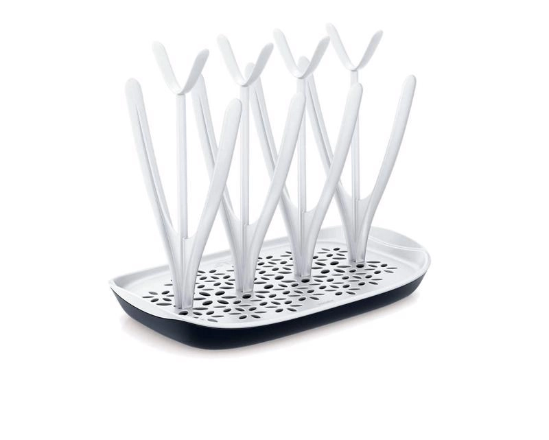 Univerzális kialakítása minden elterjedt üvegmérettel kompatibilis 330 ml-ig. Az állvány könnyen összeszerelhető és szétszedhető a gyors tisztítás érdekében. Kiváló minőségű polipropilénből készül, amely BPA-mentes és nem tartalmaz ftalátokat, így a szárítás az egész család számára biztonságos.