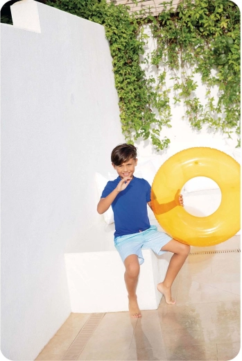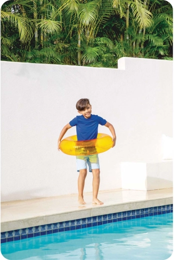 A világos narancssárga szín megkönnyíti a gyermekek felügyeletét és növeli a biztonságot a medencénél és nyílt vízen is.