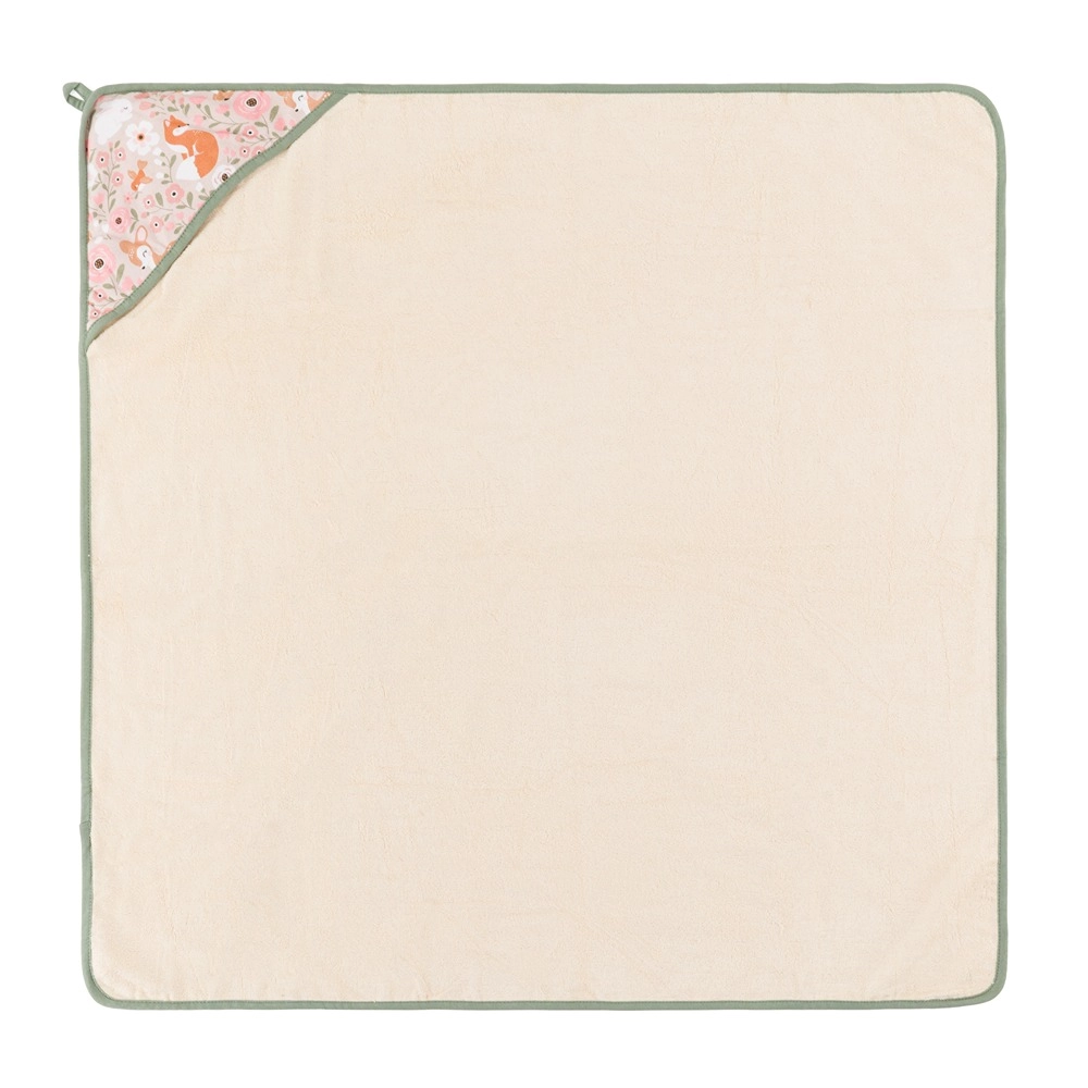 A 100 × 100 cm-es, négyzetes forma könnyen alkalmazkodik újszülöttekhez, csecsemőkhöz és totyogókhoz. A kapucni melegen tartja a fejet, a akasztófül pedig megkönnyíti a gyors felakasztást és szárítást. Az elegáns, környezetbarát kraftkarton csomagolásból ráadásul szép ajándék válik friss szülőknek.