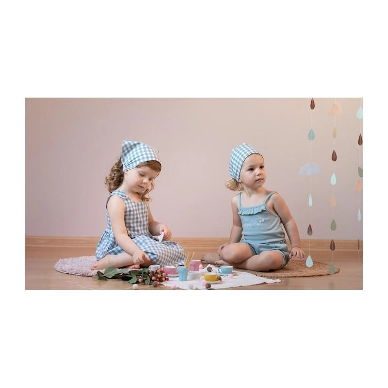Stílusos és praktikus PINOKIO gyerek kendő a Sweet Cherry kollekcióból, kiváló minőségű 100% pamutból. A kellemesen puha anyagnak, a légáteresztésnek és a hátsó gumírozásnak köszönhetően tökéletesen alkalmazkodik a gyermek fejéhez, és segít megóvni a bőrt a napsütéstől.