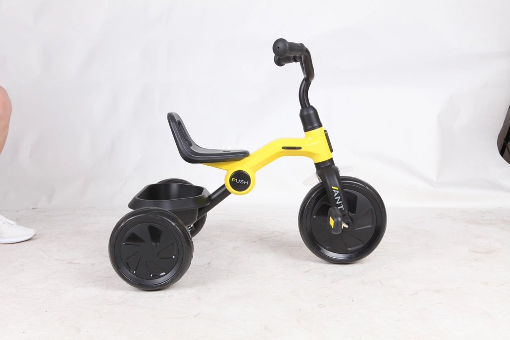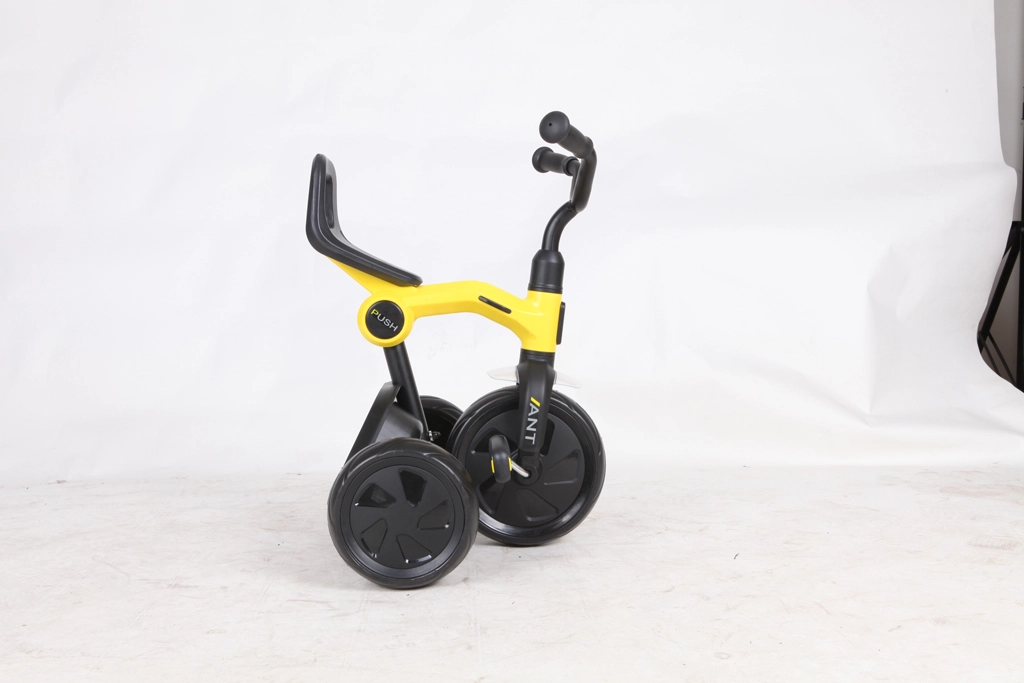 A könnyű és tartós Qplay Ant háromkerekű stílusos sárga színben ideális 2–6 éves gyerekeknek. Kínál masszív fémvázat, állítható ülést, amely együtt nő a gyermekkel, karbantartást nem igénylő EVA kerekeket, amelyek ellenállnak a defektnek, valamint kompakt, összecsukható kialakítást hordfogantyúval a könnyű szállításhoz. A biztonságról biztonsági öv gondoskodik, a praktikus hátsó kosár pedig elnyeli az útra szánt játékokat.