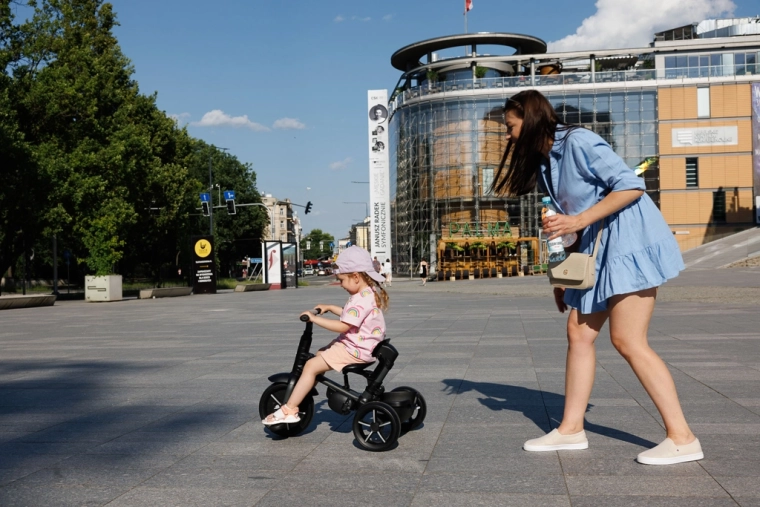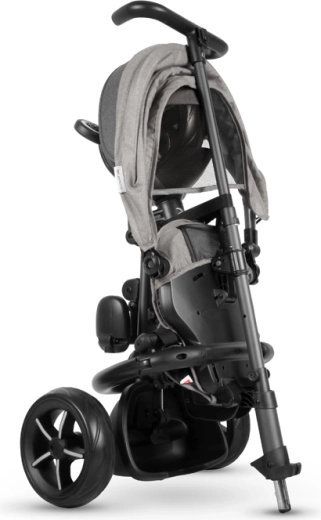 Néhány kattintással, szerszám nélkül összehajtható. Összecsukás után a háromkerekű egyszerűen húzható, mint egy utazótáska – ideális autóba és tömegközlekedéshez.