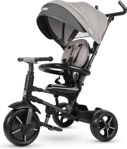 Élvezze a kényelmes és biztonságos kirándulásokat a elegáns szürke Qplay Rito Star háromkerekűvel. Kínál szerszám nélküli, összecsukható kialakítást, szülői kormányzást állítható magasságú tolókarral, napellenzőt UV-védelemmel UPF 50+ és 5 pontos biztonsági övet a maximális védelemért. A szabadonfutó pedáloknak, a levehető biztonsági rúdnak és az rezgéscsillapító kerekeknek köszönhetően 10-től 72 hónapos korig együtt nő a gyermekkel.