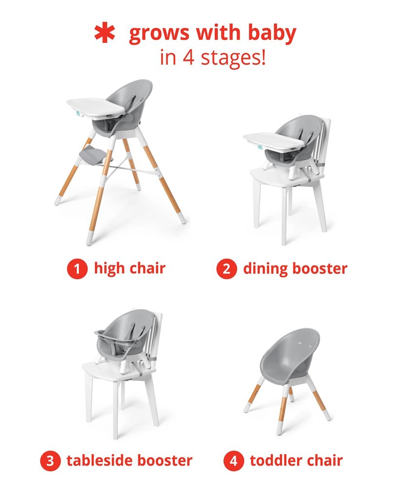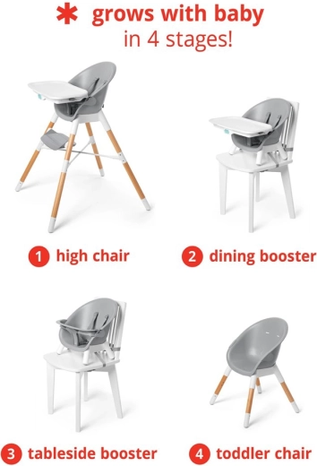- 4 az 1-ben használat: magas etetőszék tálcával, magas etetőszék tálca nélkül, magas szék az asztalhoz, gyerek szék/fotel