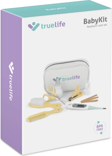 A TRUELIFE BabyKit átgondolt szett, amely az első napoktól lefedi a baba mindennapi igényeit. A TrueLife Care T3 digitális hőmérő 5–10 másodperc alatt mér, háromszínű, háttérvilágított kijelzővel a gyors tájékozódáshoz és rugalmas heggyel, amely kíméletes az érzékeny bőrhöz. Az orrszívó segít felszabadítani a légutakat, míg a körömolló és a csipesz biztonságosan lekerekített hegyével megkönnyíti a körömápolást. A puha kefe és a fésű ideális az első hajtincsekhez.