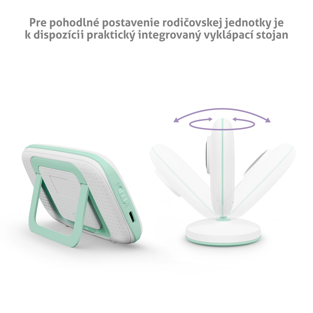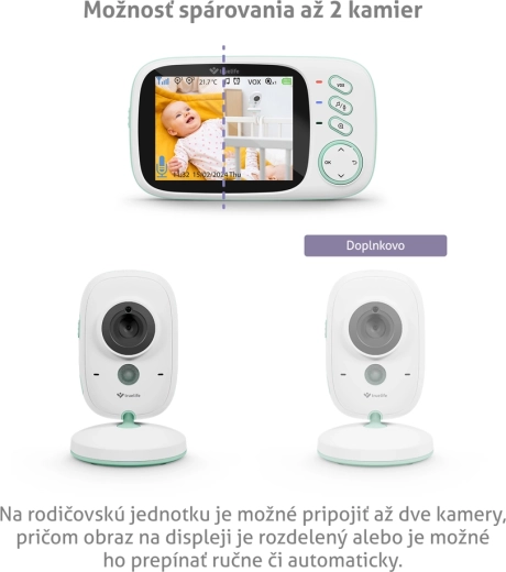 - Hőmérséklet-érzékelés, automatikus éjjellátás, altatódalok, VOX üzemmód, kétirányú kommunikáció, etetési emlékeztetők, hatótáv- és akkumulátorállapot-jelző, akár 2 kamera párosítása