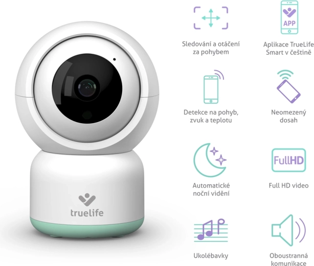 Tartsa szem előtt a babáját bárhonnan a TrueLife NannyCam R3 Smart bébiőrrel, amely Full HD 1080p képet, interneten keresztüli korlátlan hatótávot és okos funkciókat kínál. Forgatható kamera mozgáskövetéssel, éjjellátás, hang-, mozgás- és hőmérséklet‑érzékelés, kétirányú kommunikáció és altatódalok állnak rendelkezésre. Egyszerű vezérlés a TrueLife Smart magyar nyelvű alkalmazásában, biztonságos titkosítás és 24/7 microSD‑re történő rögzítés lehetősége.