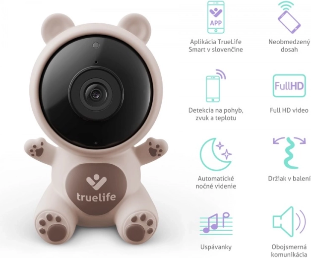 A bájos és okos TrueLife NannyCam S3 Smart bébiőr szilikon medve kivitelben Full HD képet, éjjellátást, mozgás-, hang- és hőmérséklet-érzékelést, valamint kétirányú kommunikációt kínál. A TrueLife Smart alkalmazásnak köszönhetően korlátlan hatótávot kap, akár 16 kamera csatlakoztatásának lehetőségét és hozzáférés megosztását korlátlan számú felhasználóval. Nem hiányoznak az altatódalok, a kis éjjeli lámpa és a fotók és videók mentése sem – a nappali és éjszakai nyugalomért és áttekinthetőségért.