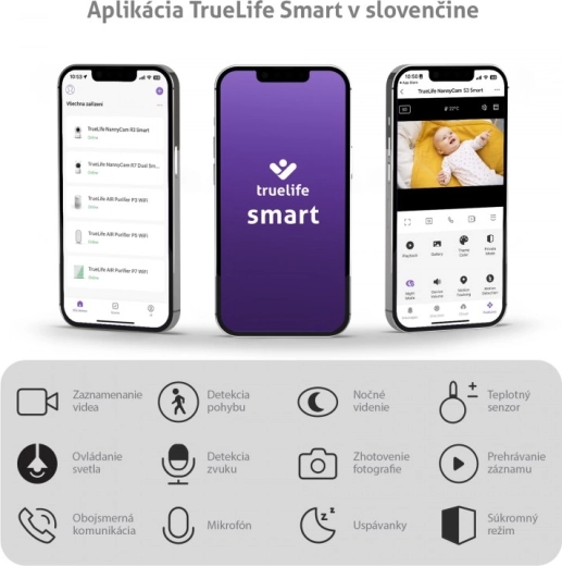A bébiőr a biztonságos TrueLife Smart alkalmazáson keresztül működik (magyar felület elérhető), ötrétegű védelemmel és AES titkosítással. Korlátlan hatótávot kap a világ bármely pontjáról, akár 16 kamera csatlakoztatásával és korlátlan számú felhasználóval. Természetes a fotók és videók rögzítése microSD kártyára. A rugalmas, hajlítható tartó szinte bárhová rögzíthető – például a kiságy keretére.