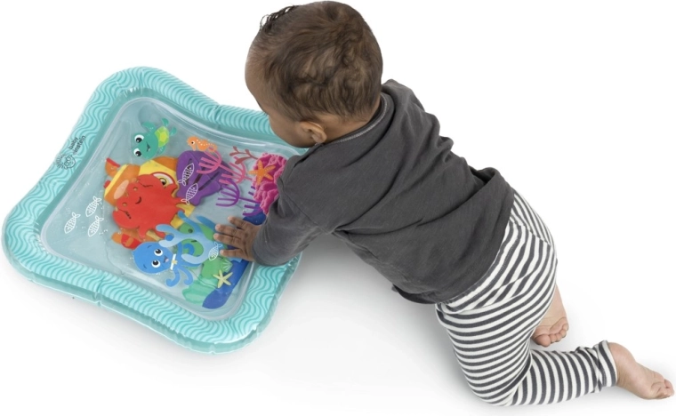 A puha, felfújható peremek és a vizes közép rész ösztönzik a hason fekvést, erősítik a nyakat és a vállakat, miközben fejlesztik a finommotorikát.