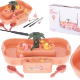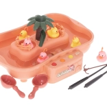 Változtassátok a kacsa-horgászatot vidám kihívássá! A készlet tartalmaz egy szigetes medencét, 5 kiskacsát, 2 horgászbotot és 2 merítőhálót, így a gyerekek élvezhetik a versengést és az önálló játékot is. A kellemes színeknek és a mozgó elemeknek köszönhetően a játék természetes módon fejleszti a megfigyelőképességet és az ügyességet.