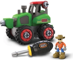 Két remek mezőgazdasági gépváltozat közül lehet választani (pl. traktor vagy kombájn). Minden készlet színes elemeket, működő csatlakozó csavarokat és egy kedves farmer figurát tartalmaz. A tartós műanyag kivitel ideális a mindennapos játékhoz otthon és útközben is.
