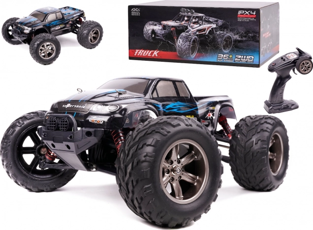 Élje át a gyorsaság és a terepjáró kaland izgalmát ezzel a lenyűgöző Monster Truck kel! Ez a nagy méretű, kék színű távirányítós autó maximális sebességgel és irányíthatósággal rendelkezik, hogy minden terepen gond nélkül mozoghasson.