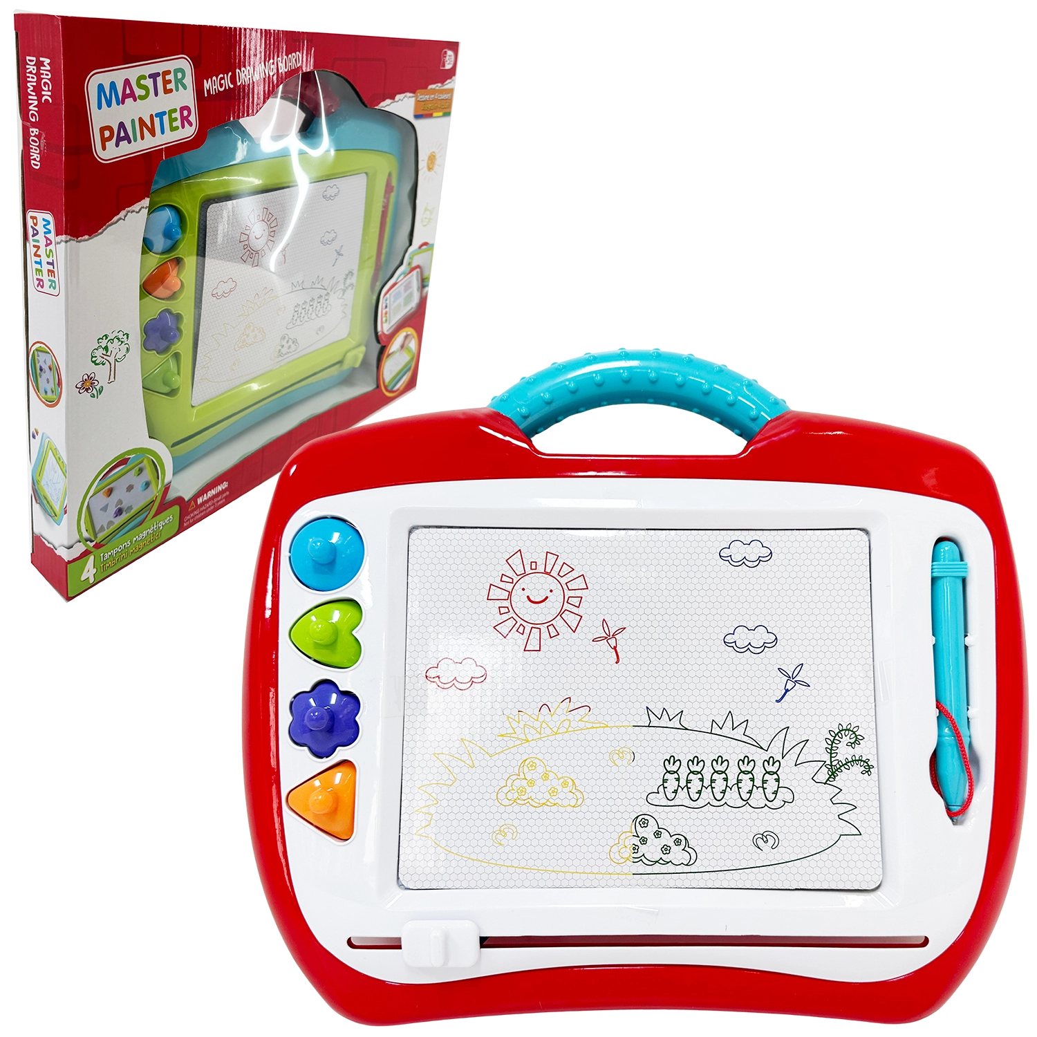 Nagy mágneses rajztábla bélyegzőkkel – színes
