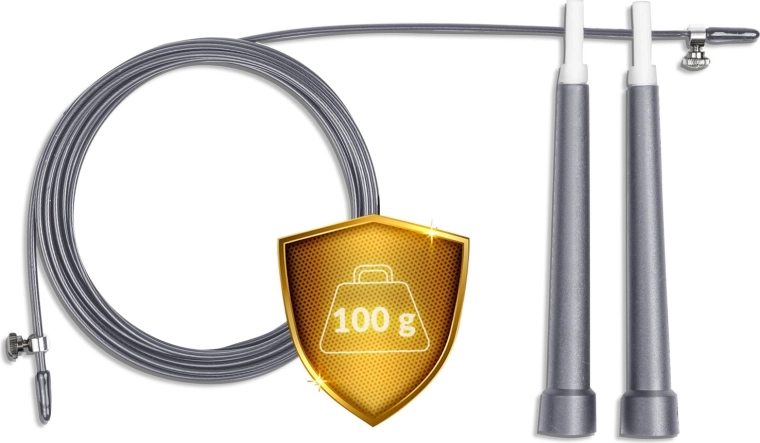 Vékony, fonott acélsodrony védőcsőben a minimális súrlódásért és rendkívül gyors forgásért – ideális kardióhoz, double underhez és speed edzésekhez.