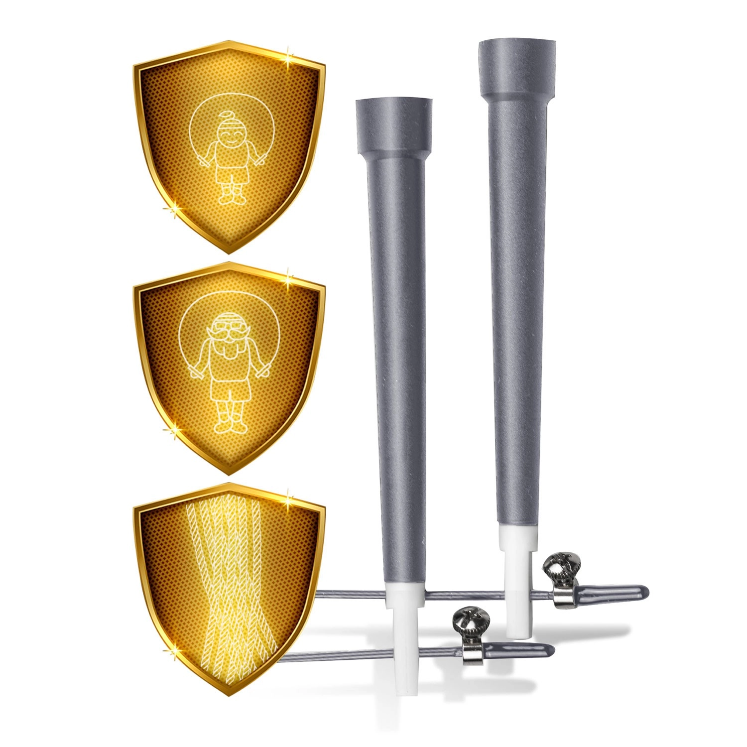 A kábelvégeken lévő integrált fémcsavarok gyors és biztonságos hosszbeállítást tesznek lehetővé a testalkatodhoz és edzésstílusodhoz igazítva.