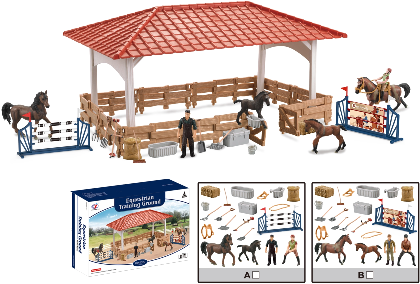 - Realista kiegészítők: lófigurák, akadályok és dekorációk az igazi lovas élményért.