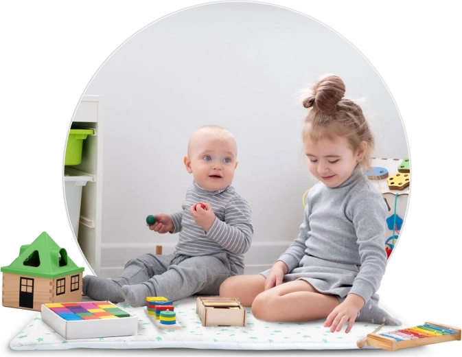 A szett része egy kivehető, puhán töltött, csúszásgátlós alátét és három párna – tökéletes olvasáshoz, játékhoz és egy kis pihenéshez.