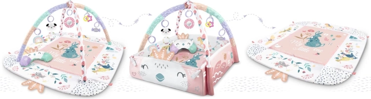 A felhajtható oldalfalak és a levehető ívek lehetővé teszik a játék módjának gyors váltását a baba életkora és igényei szerint. Ideális fekvéshez, pocakidőhöz és az első ücsörgéshez.