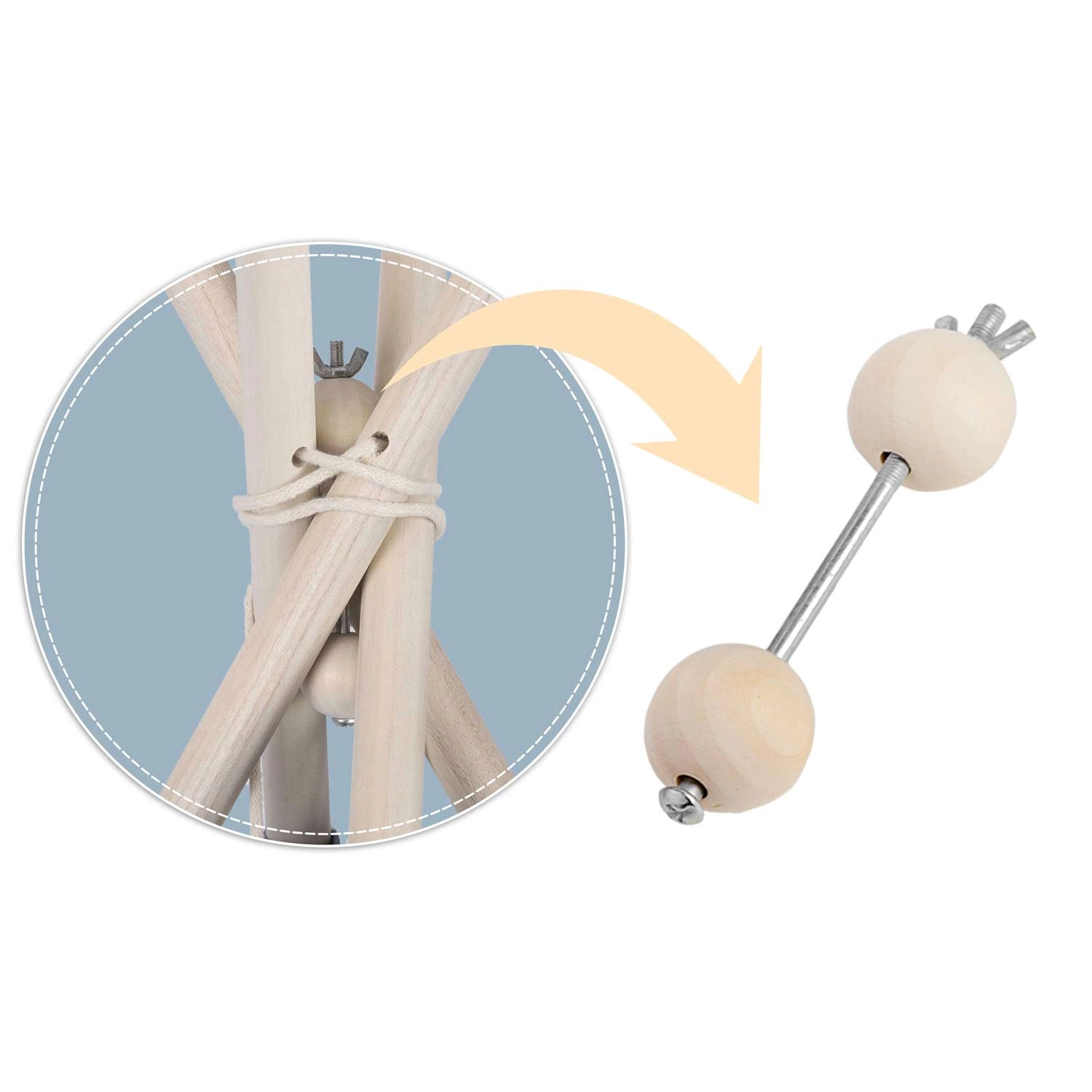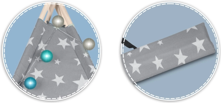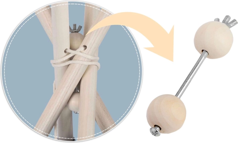 Négy fenyőfa rúd és a mellékelt stabilizátor tartja a teepee formáját, növeli a biztonságot és biztosítja a szilárdságot játék közben.
