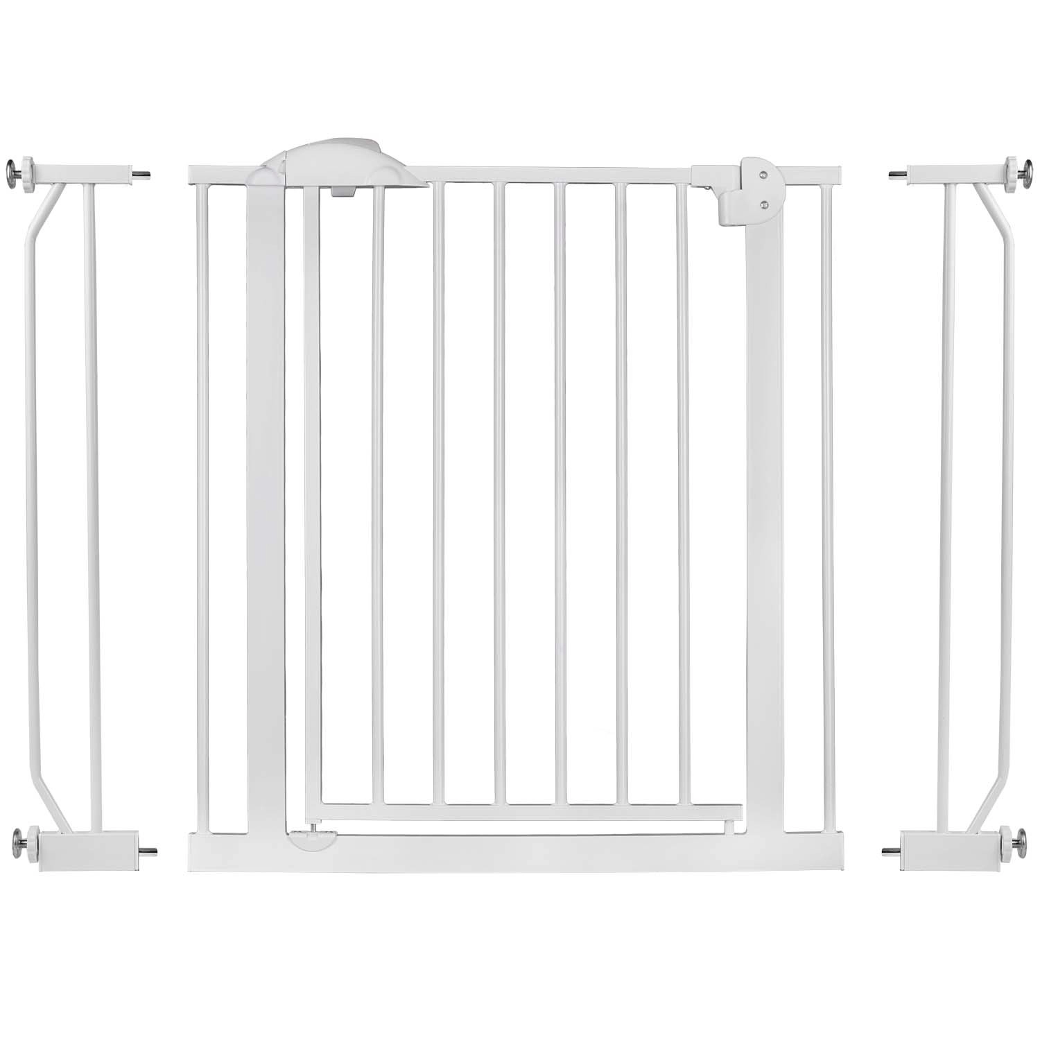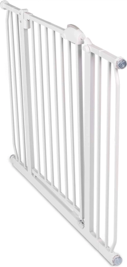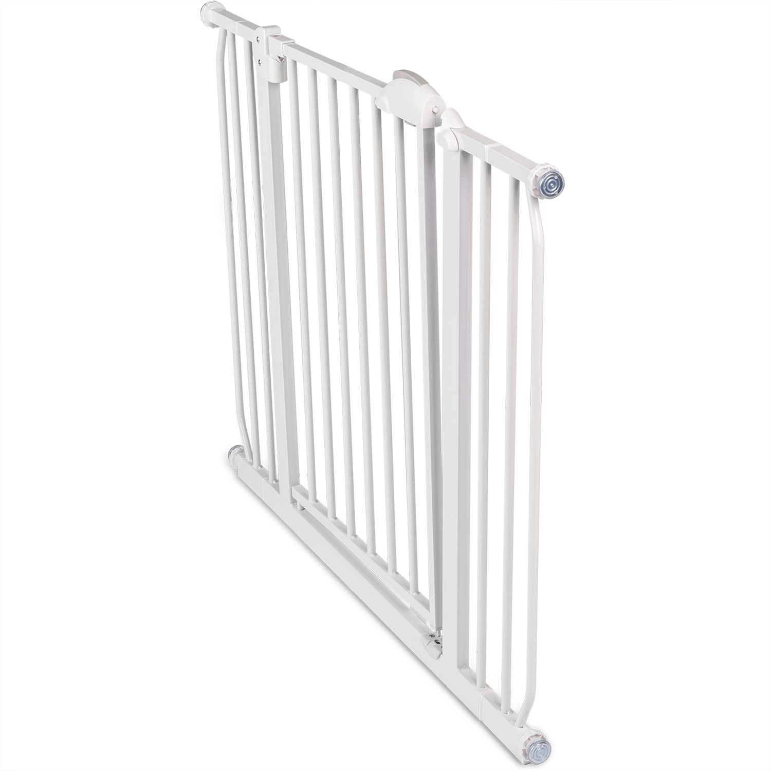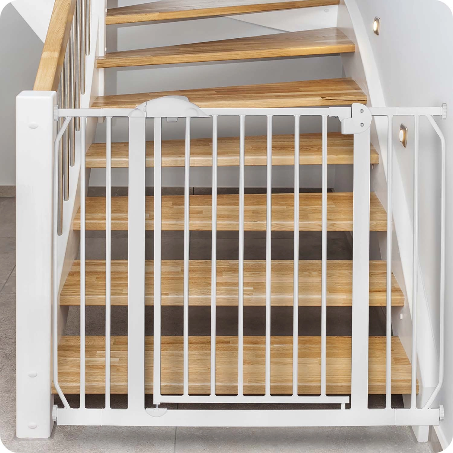 A folyamatosan állítható 75–105 cm szélességnek és a mellékelt hosszabbítóknak köszönhetően a kapu a legtöbb ajtóhoz és átjáróhoz egyszerűen igazítható. A kapu két irányba nyitható, egy kézzel kezelhető, szükség esetén egyirányú nyitásra zárolható vagy 90°-ban rögzíthető a kényelmes áthaladás érdekében.