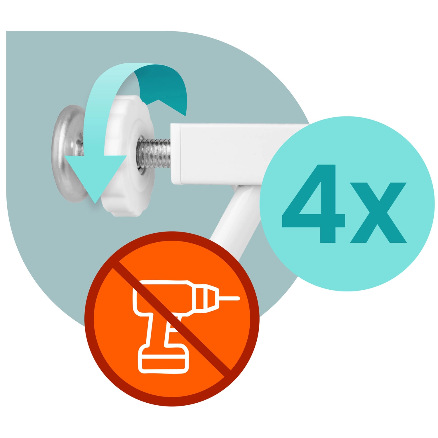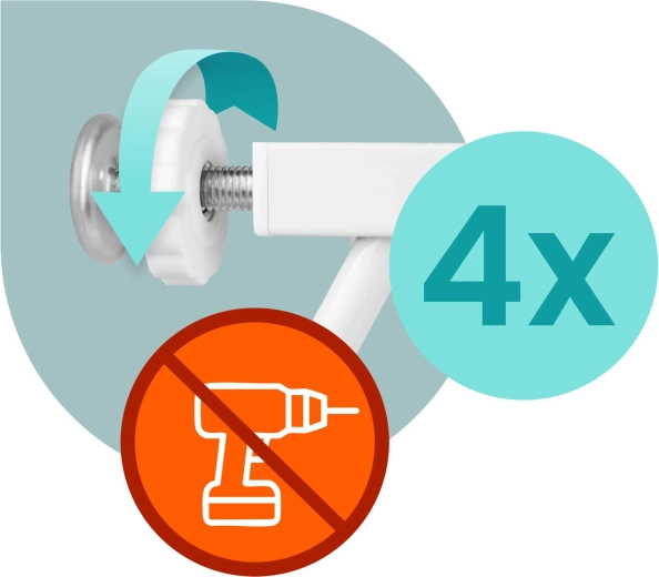 A feszítős rögzítés oldalsó alátétekkel lehetővé teszi a szerszám nélküli telepítést az ajtófélfa vagy a fal sérülése nélkül. A szétszerelés ugyanolyan gyors.