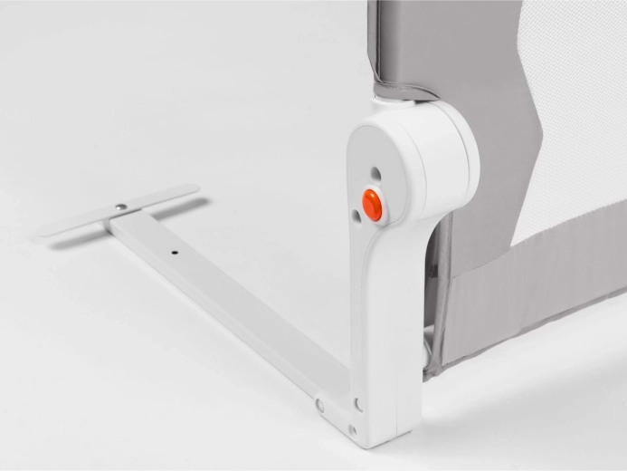 A rács könnyen lehajtható az ágyhoz való hozzáféréshez. A reteszelő rendszer megakadályozza a véletlen összecsukódást alvás vagy játék közben.