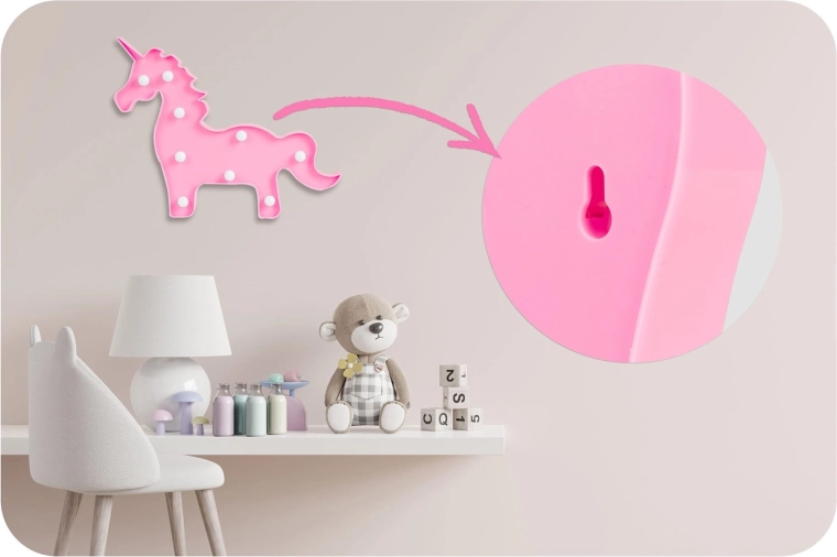 A könnyű műanyag ház biztonságos és hűvös tapintású, a LED diódák nem melegszenek fel és energiatakarékosak. A praktikus felakasztónyílás lehetővé teszi a gyors fali szerelést bonyolult telepítés nélkül. A minimalista rózsaszín kivitel remekül illik a modern enteriőrökhöz, és ovisoknak és tiniknek egyaránt örömet szerez.