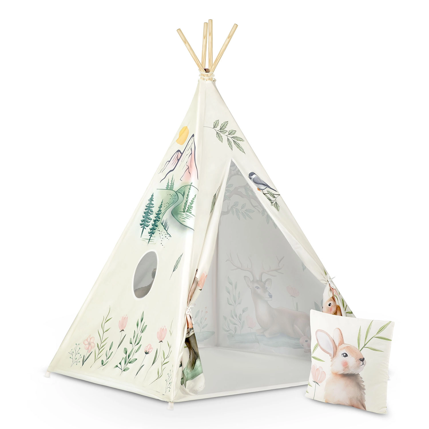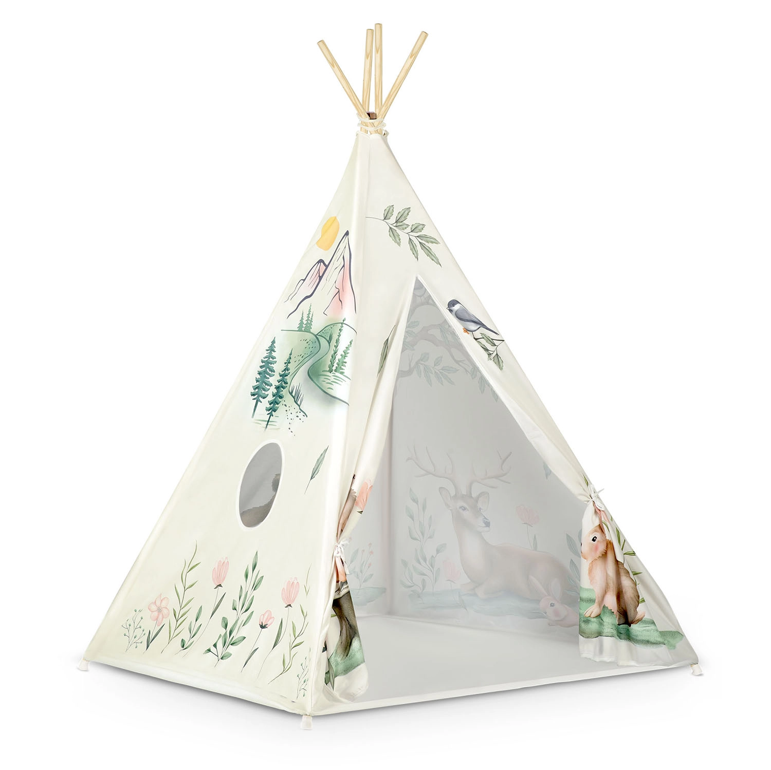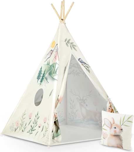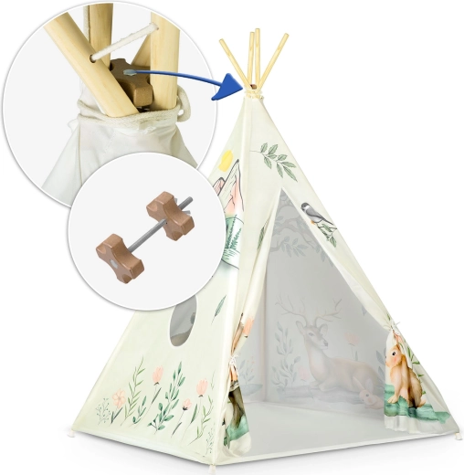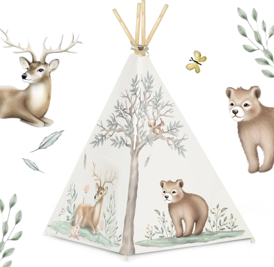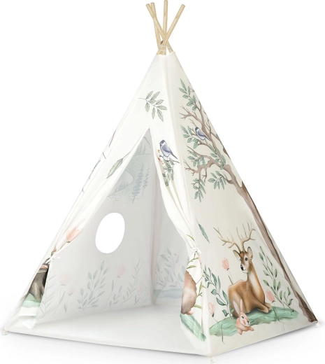 A NUKIDO gyerek tipi a fantázia, a játék és a meghitt olvasás kedvenc helyévé válik. A lélegző, minőségi erdei mintás szövet otthonos hangulatot teremt, míg a masszív fenyőrudak és a 2025-ös továbbfejlesztett stabilizátor kiváló stabilitást és biztonságot nyújtanak még a legkisebbeknek is. A könnyű összecsukhatóságnak köszönhetően a tipit gyorsan áthelyezheti a gyerekszobából a nappaliba vagy a teraszra – remek árnyékot ad forró napokon.