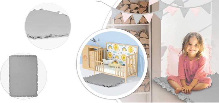 A prémium pamuttartalmú, 175 g/m² grammsúlyú textil kellemes tapintású, jól szellőzik és bírja a mindennapos játékot. Ideális a gyerekek kényelmes és biztonságos környezetéhez.