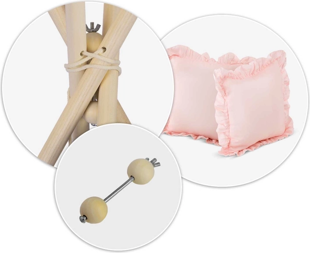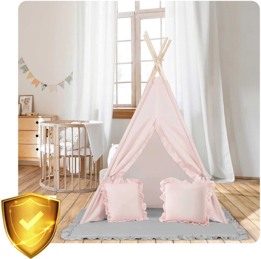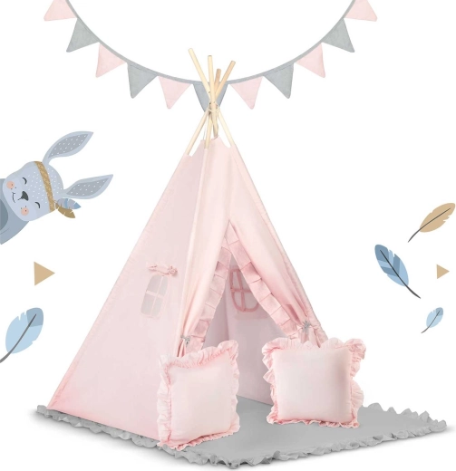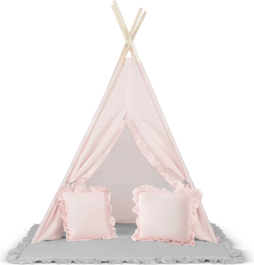 Alakíts ki a gyerekeknek saját, kuckós sarkot játékhoz és olvasáshoz. Ez a világos rózsaszín TIPI sátor a Nukido márkától természetes anyagokból készült, magas grammsúllyal a puhaság és tartósság érdekében, stabil szerkezettel és ajándék stabilizátorral, könnyen összeállítható és kevés helyet foglal. A csomagban 2 párnát, vastag, csúszásgátlós szigetelő alátétet, girlandot és a Montessori-módszert támogató részleteket találsz a kreatív és biztonságos játékhoz.