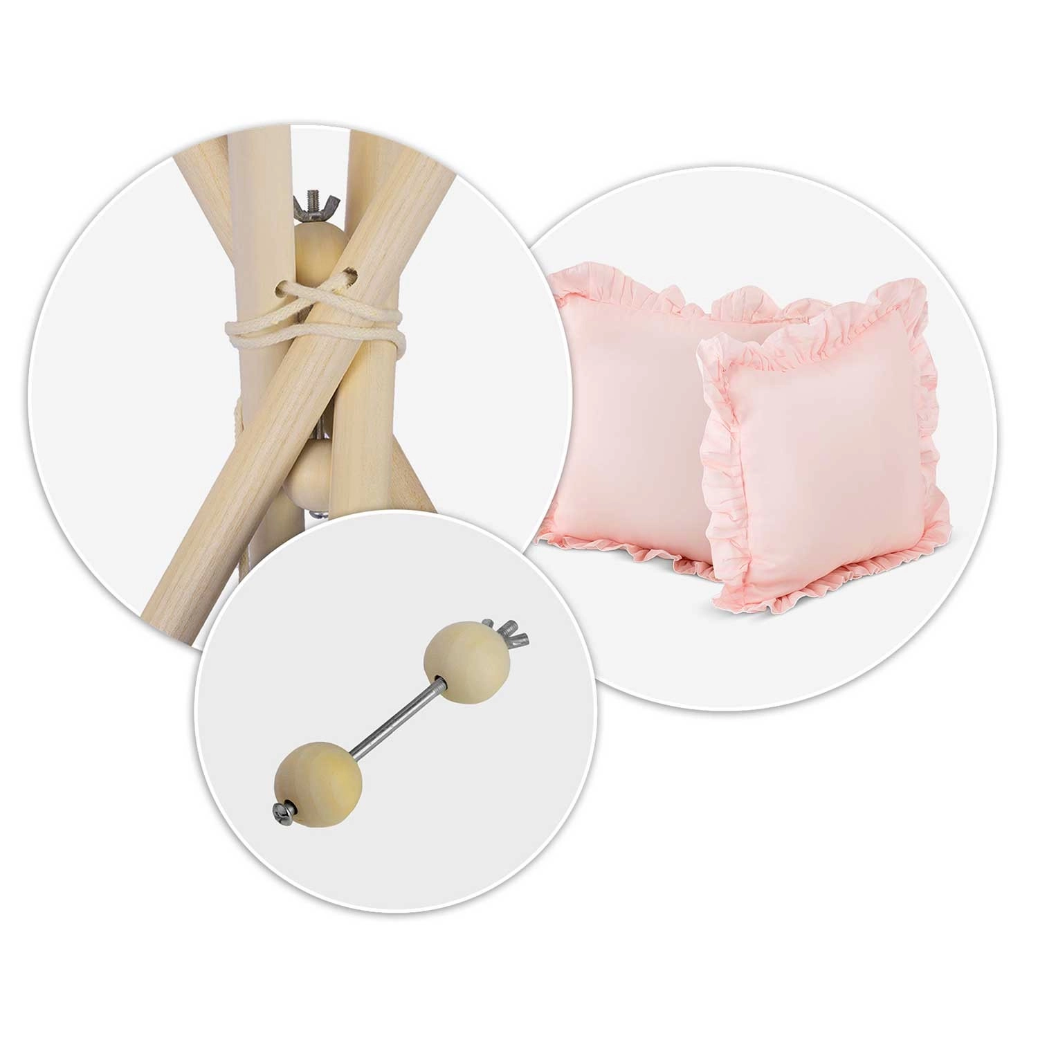 Négy fenyőfa rúd és a mellékelt stabilizátor gondoskodik a szilárdságról és a biztonságról. A sátor otthon és a teraszon is könnyen összeállítható és mozgatható.