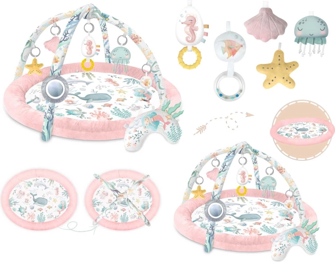 Fedezze fel a pihe-puha és biztonságos Nukido Ocean baba játszószőnyeget rózsaszín kivitelben, amely ötvözi az érzékelés fejlesztését, a koordináció támogatását és a kényelmet a hason fekvéshez (tummy time). Két levehető ív 7 multifunkciós játékkal (tükör, sípoló, csörgők és zizegő elemek) ösztönzi a megfogást és a felfedezést. Az egyszerű összecsukás, a puha, mosható anyag és a támasztó párnácska ideális aktivitásközponttá teszi már az első hónapoktól.