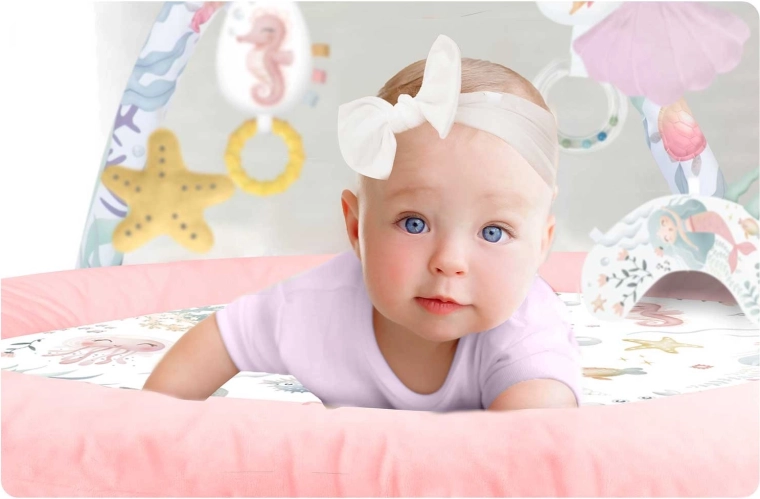 A puha párna kellemesebbé teszi a hason fekvést, és segíti a nyak- és hátizmok erősítését. A párnára játékok is rögzíthetők a még nagyobb motivációért.