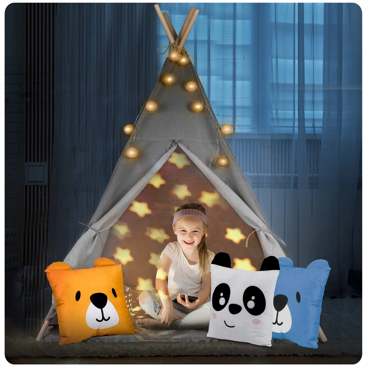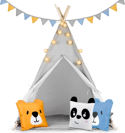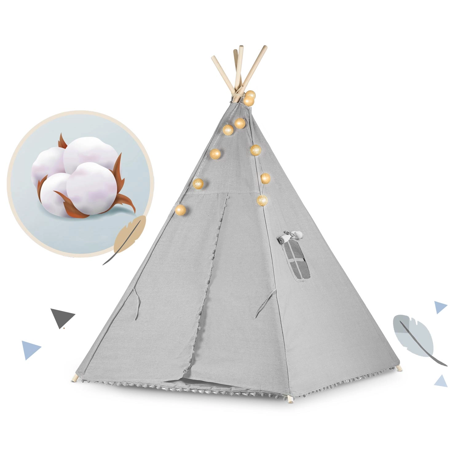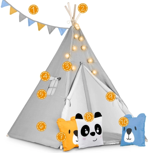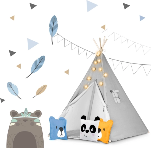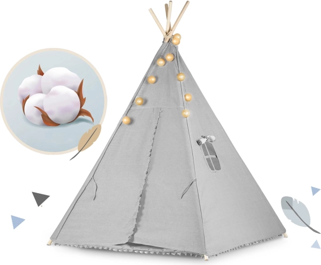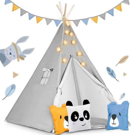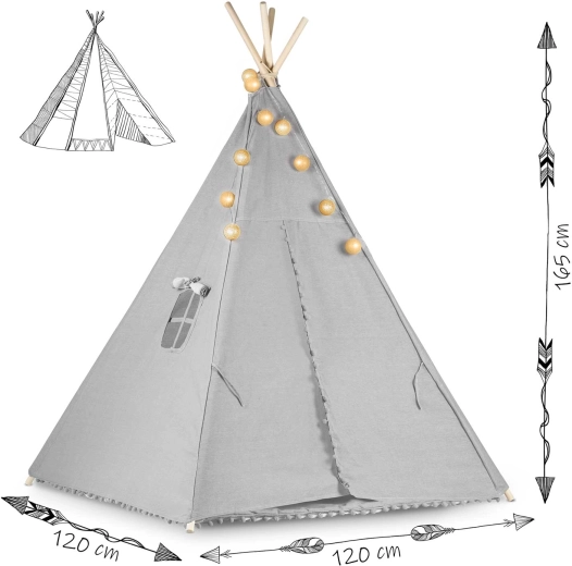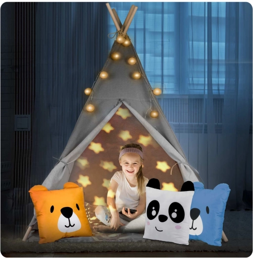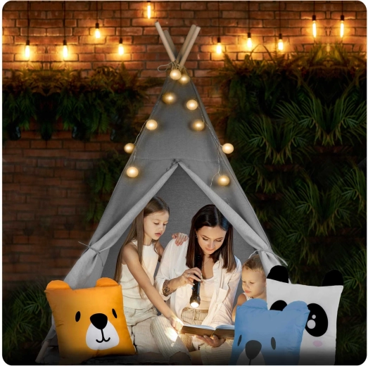 A meleg fényű LED-ek és a dekoratív girland meghitt olvasósarkot és esti búvóhelyet teremtenek. A gyerekek szó szerint imádni fogják a teepee-t.