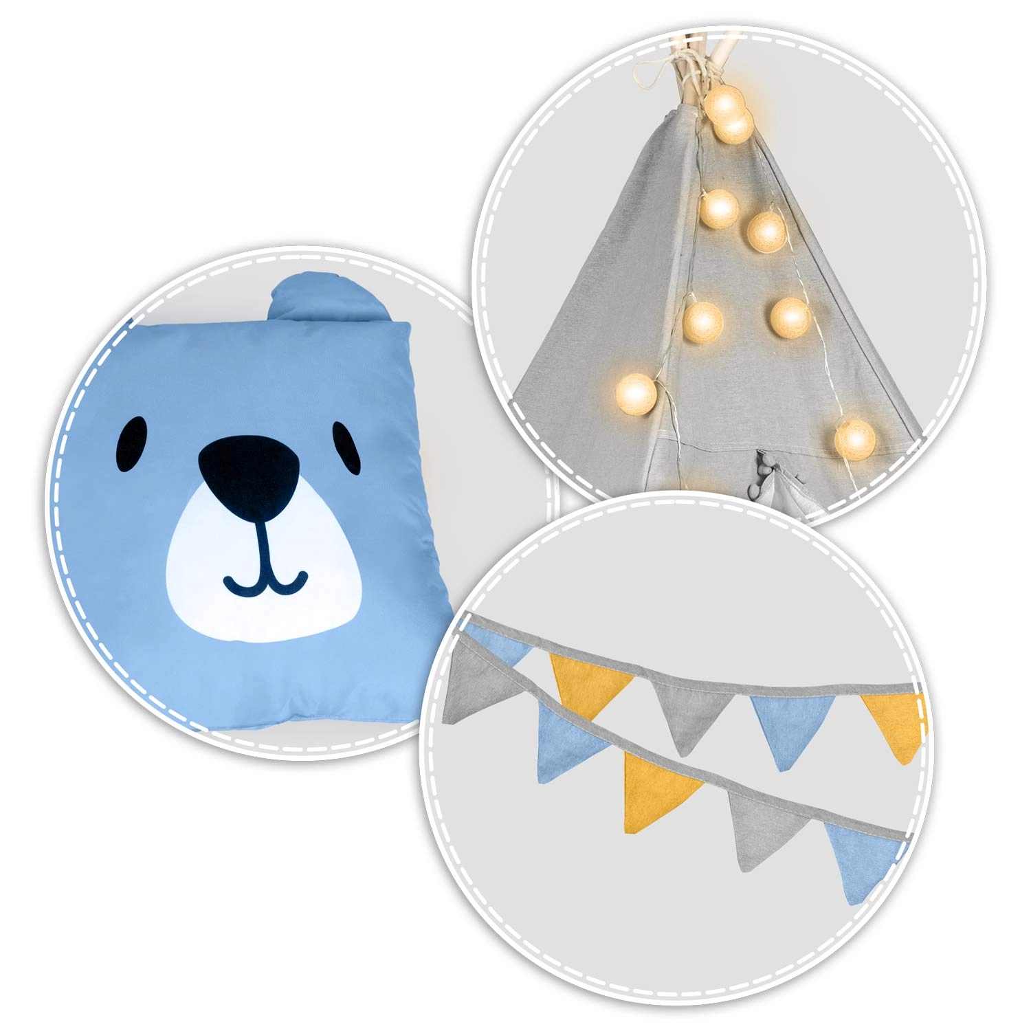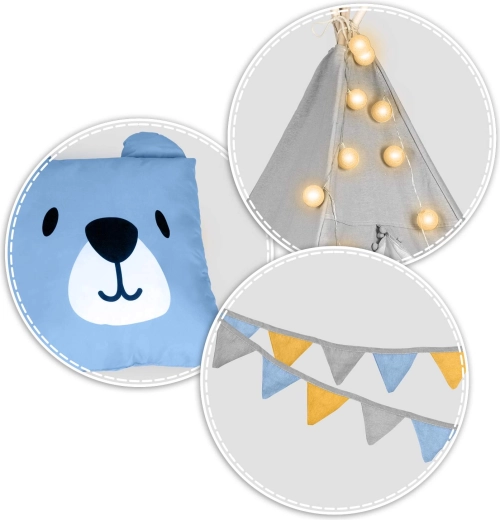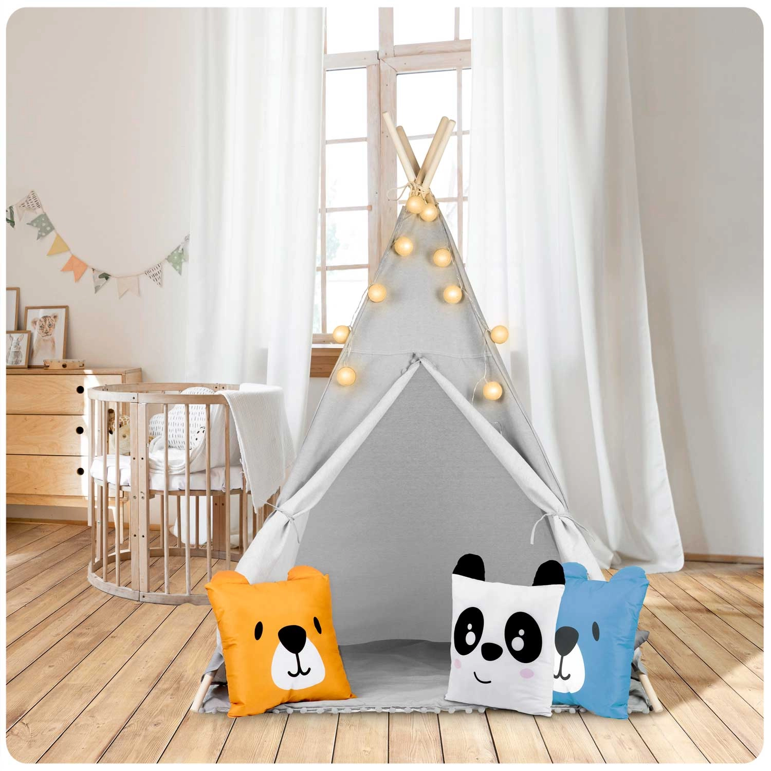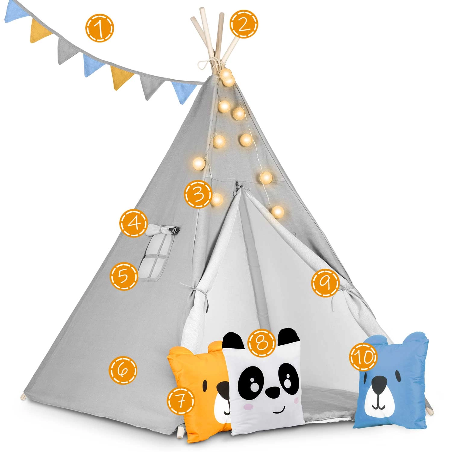 A meleg fényű LED-ek és a dekoratív girland meghitt olvasósarkot és esti búvóhelyet teremtenek. A gyerekek szó szerint imádni fogják a teepee-t.