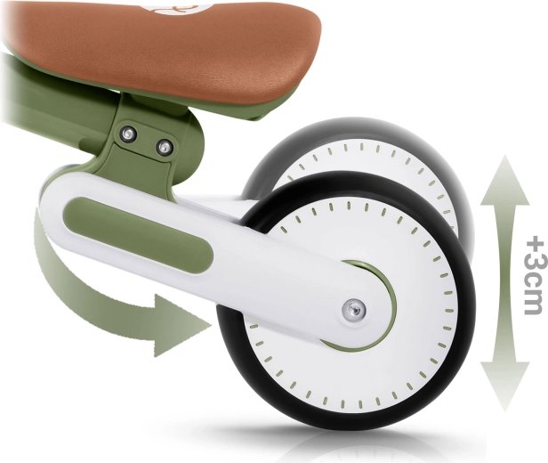 A 15 cm átmérőjű, széles, nem felfújható EVA habkerekek elnyelik az egyenetlenségeket és jól tartják az irányt. Ideális az első menetekhez otthon és a szabadban, defekt kockázata nélkül.