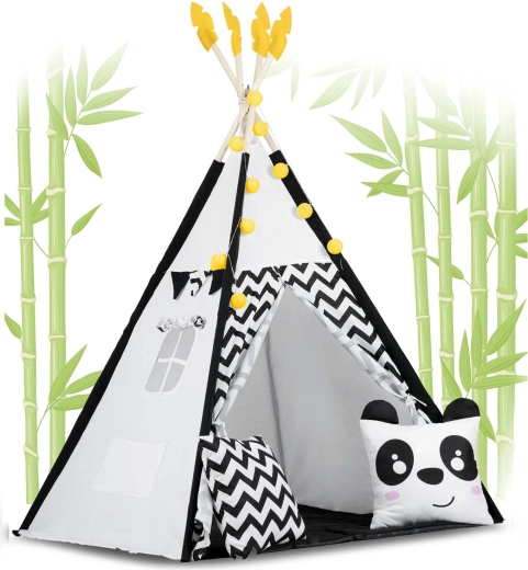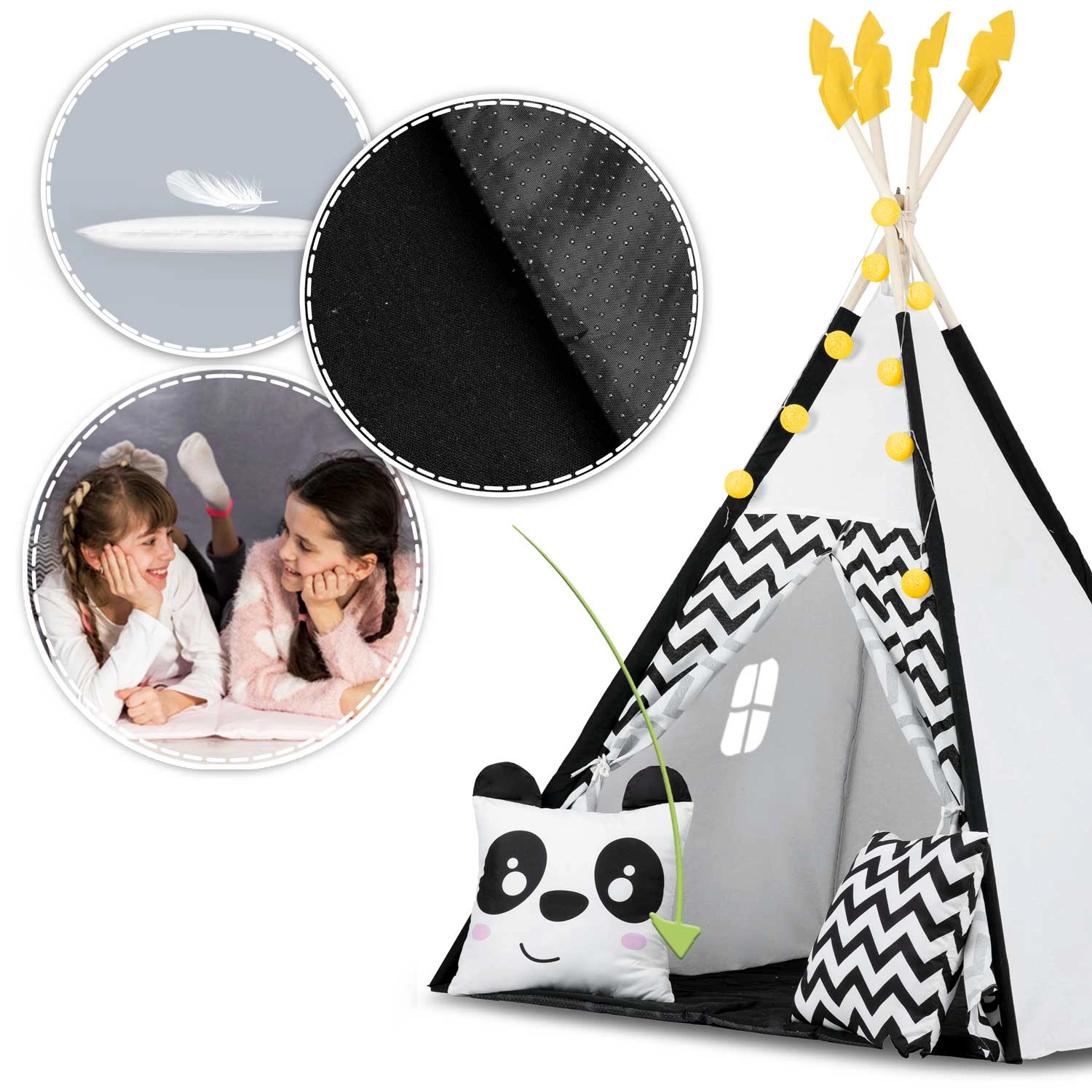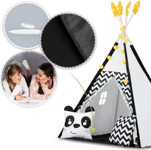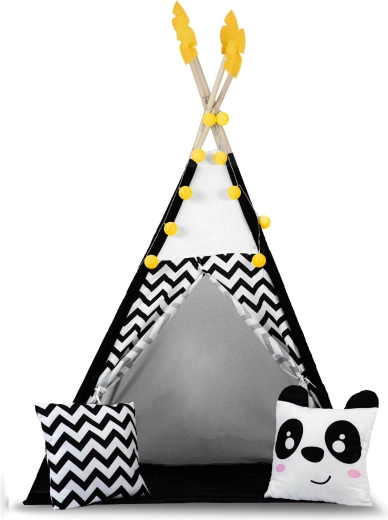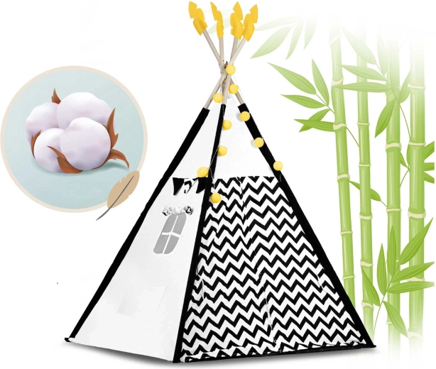 A sátor prémium pamutból készült, amely kiválóan szellőzik, puha és tartós – ideális egész napos játékhoz és pihenéshez.